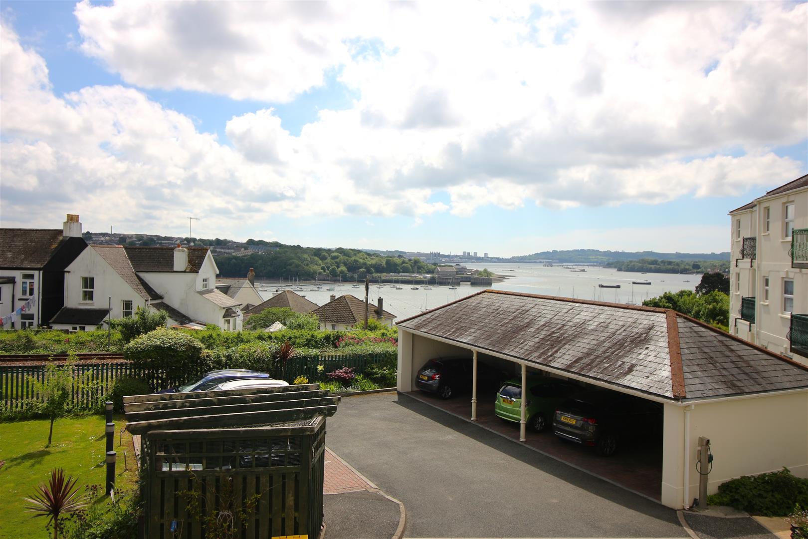 For sale with NO ONWARD CAHIN. Welcome to this exquisite apartment located in the desirable Dymond Court complex, Saltash. This splendid property boasts two well-proportioned bedrooms, including a master suite complete with an en-suite shower room. The apartment features a spacious reception room that invites natural light, creating a warm and welcoming atmosphere with stunning views of The River Tamar, fitted kitchen and modern family bathroom. One of the standout features of this home is the stunning views of the River Tamar, which can be enjoyed from not one, but two private balconies. These outdoor spaces provide the perfect setting for relaxation or entertaining, allowing you to soak in the picturesque surroundings. The apartment is situated within a secure gated complex, offering peace of mind and a sense of community. Additionally, it is conveniently located close to Saltash town centre, providing easy access to local amenities, shops, and transport links. For those with a vehicle, the property includes parking in a covered car port for one car. This apartment is an ideal choice for anyone seeking a blend of comfort, style, and breathtaking views in a relaxing location. Don’t miss the opportunity to make this stunning property your new home. EPC = C (75). Leasehold Property with 971 years remaining. Council Tax Band C. Service charge and ground rent £2100.00 per annum.